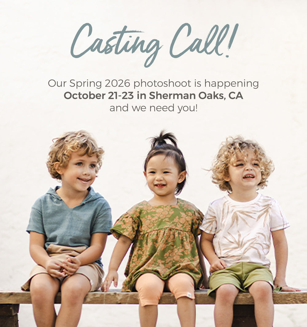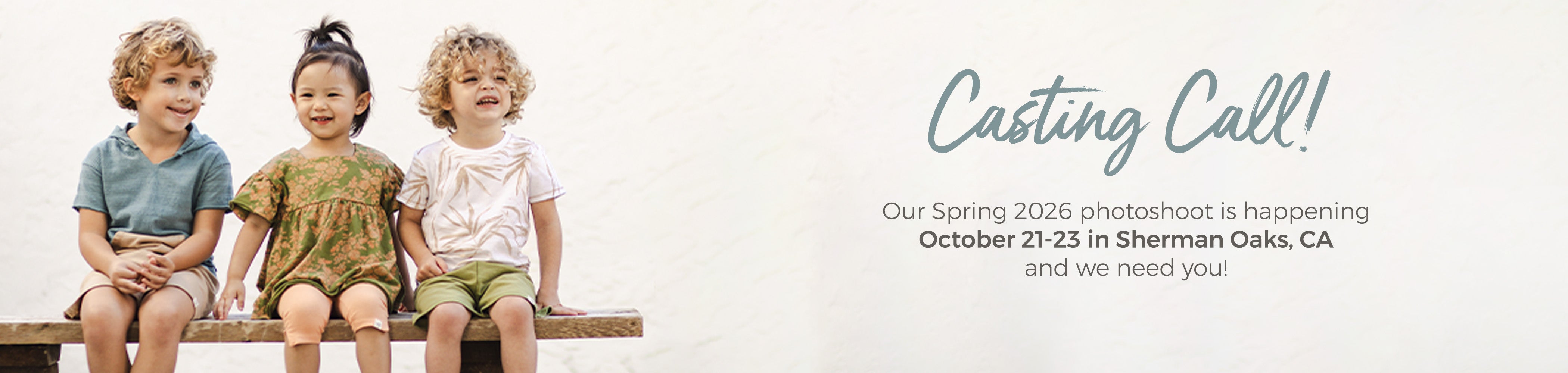 We are looking for sweet babes size 6M-8Y! Here at Burt’s Bees Baby, we are inclusive of all races, all sizes, all abilities. Twins and siblings welcome, and parents, we need you too!
