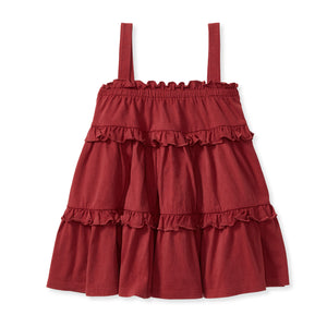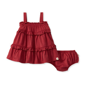 This breezy, vintage washed dress features delicate ruffle trim at the neckline, seams, and hem for an effortlessly sweet look. Includes a matching diaper cover (infant only!) for carefree play.