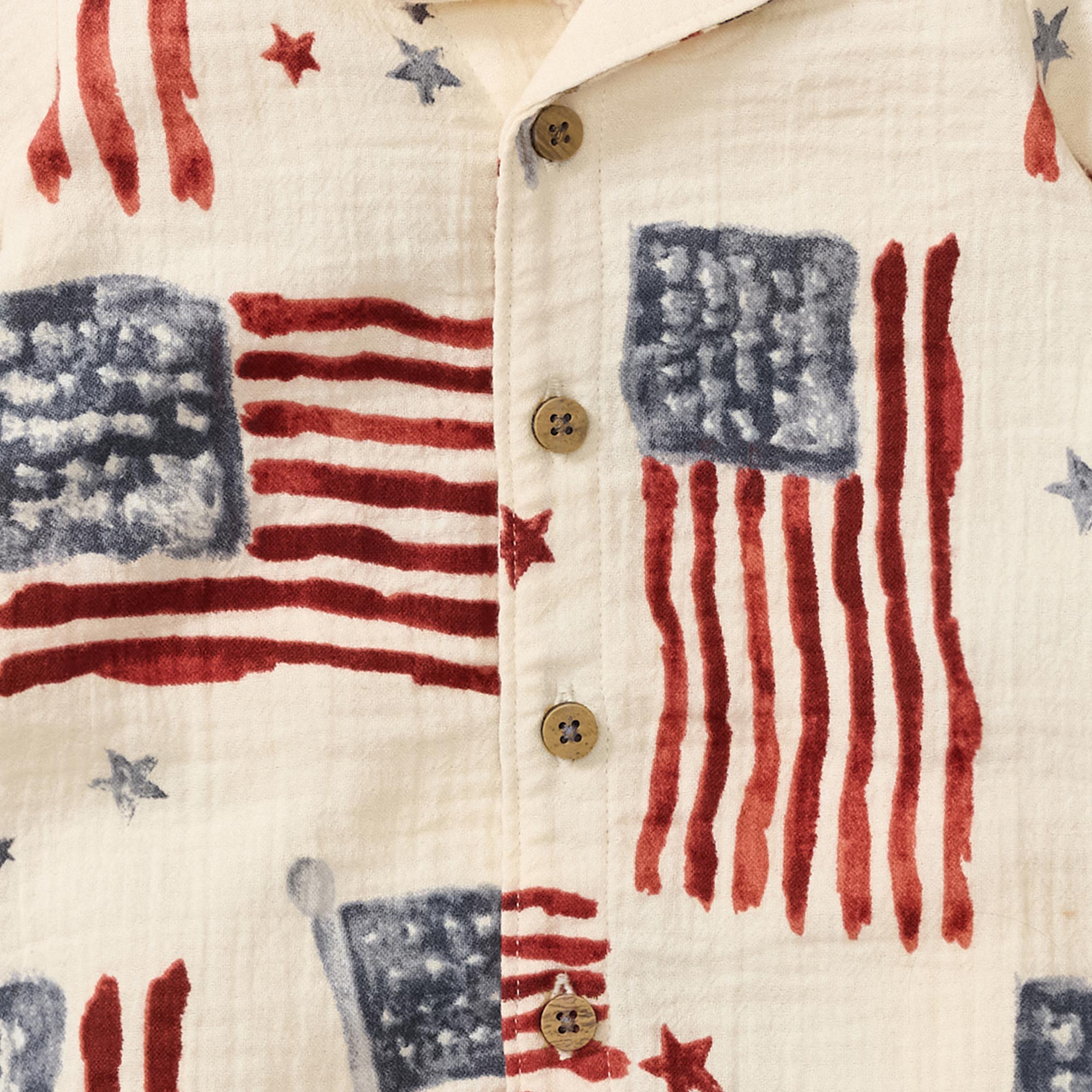Classic gauze and hand‑painted flags come together in this relaxed polo romper - it's an easy, summer‑ready pick for playtime or party time.