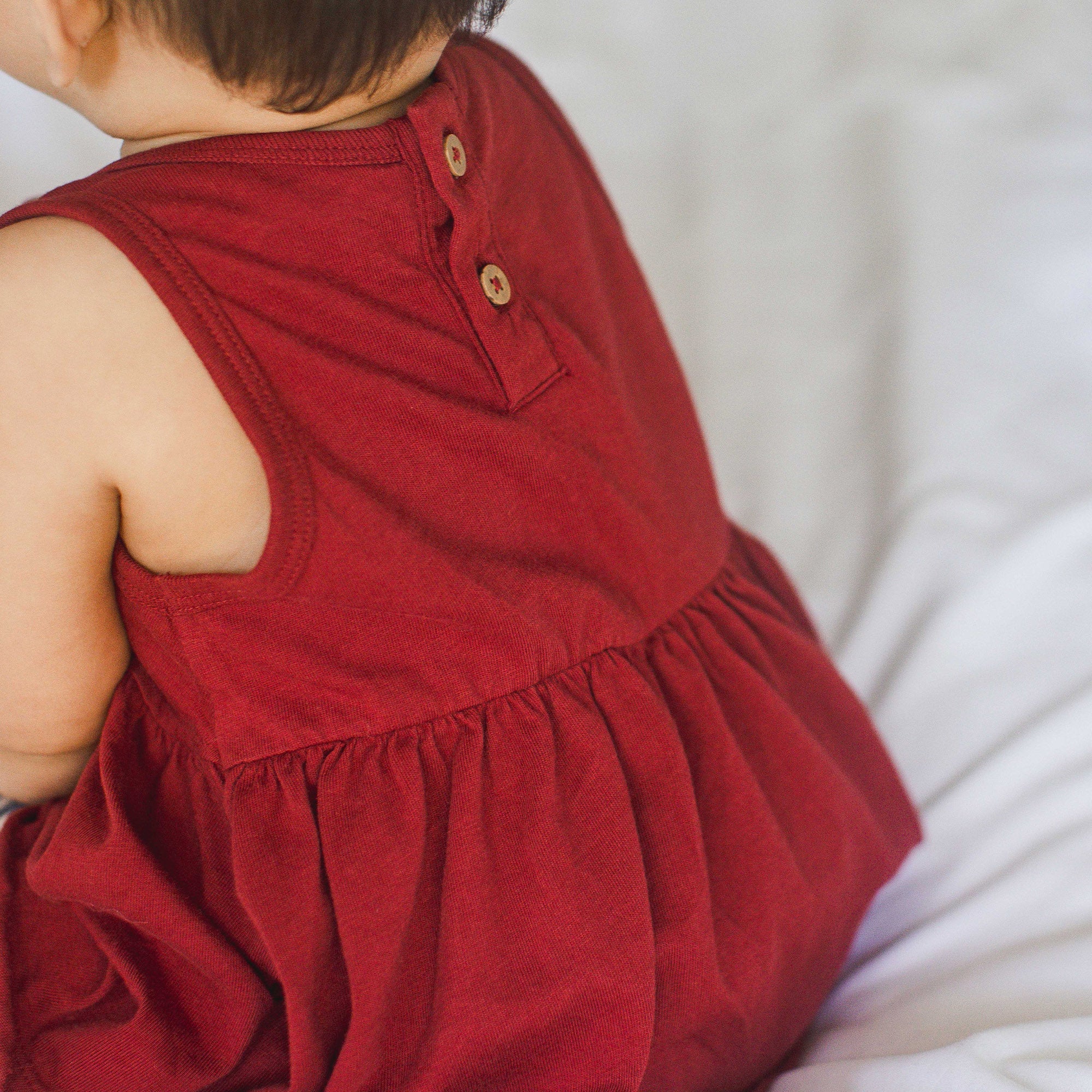 - Button placket at back neck