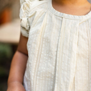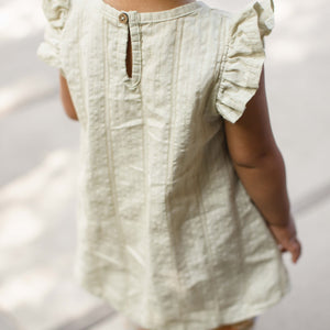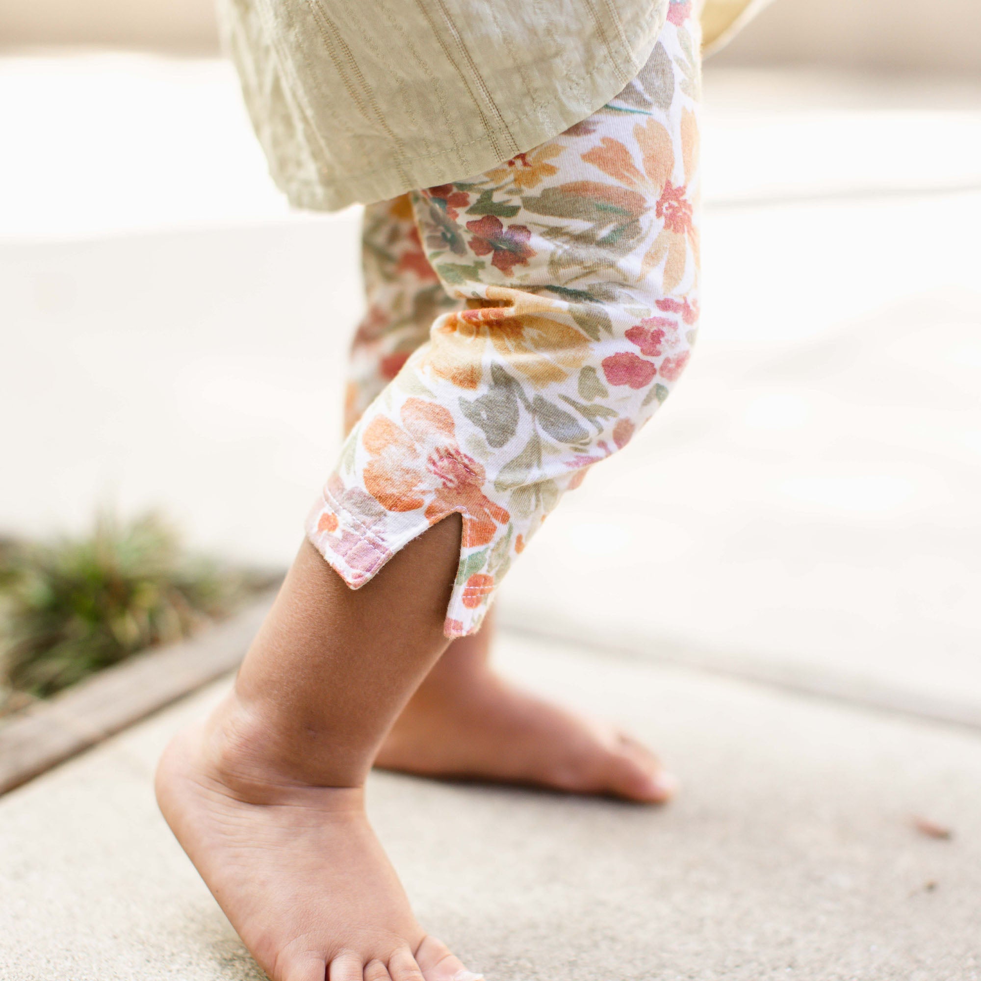New fabric alert! Stop & smell the flowers in this flutter sleeved, textured stripe seersucker tunic and hand-painted floral capri legging set — perfect for sunny days, playing outside, and all her summer adventures.
