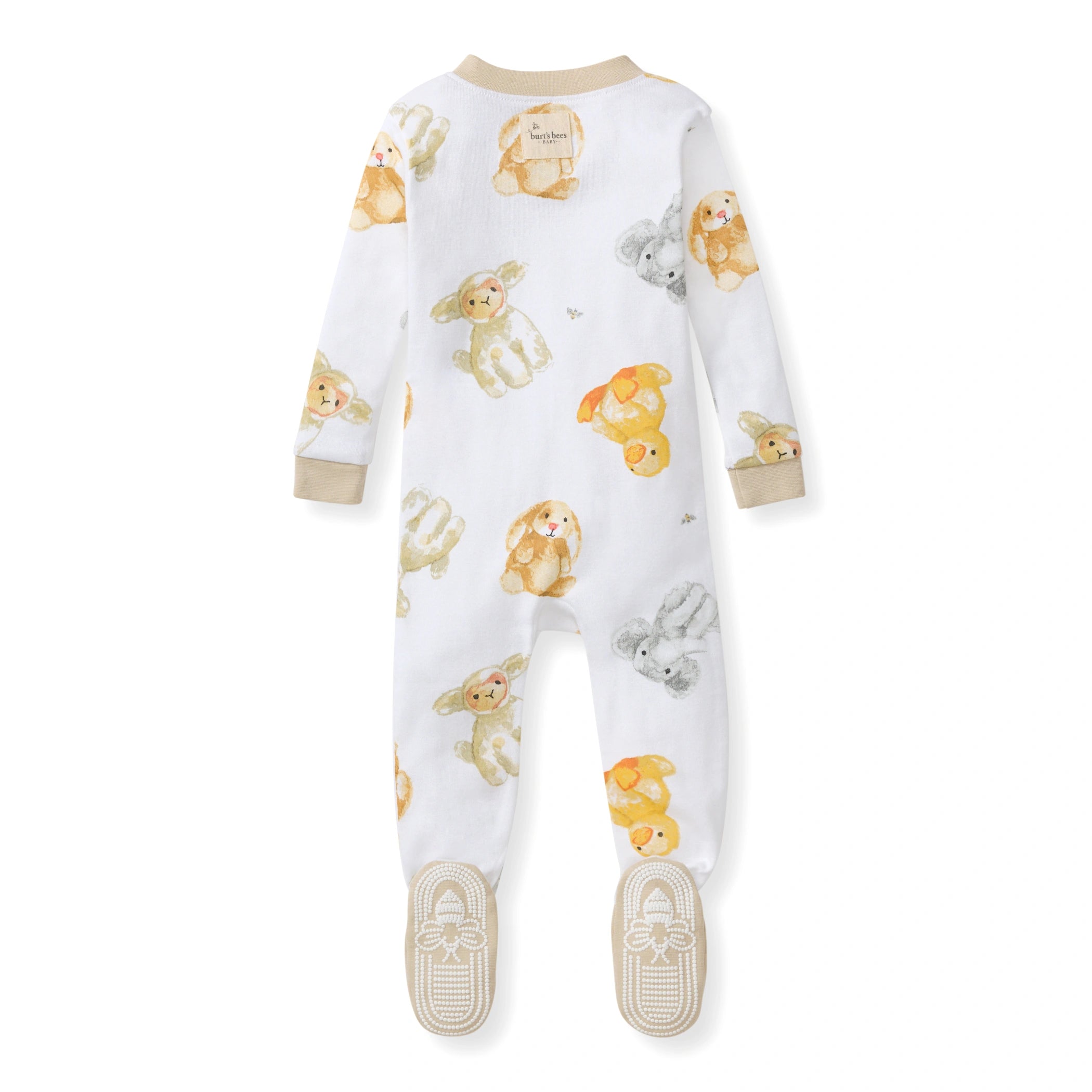 Non-slip, extra coverage bee grip on feet to get around easily, elastic at ankles to keep feet in place