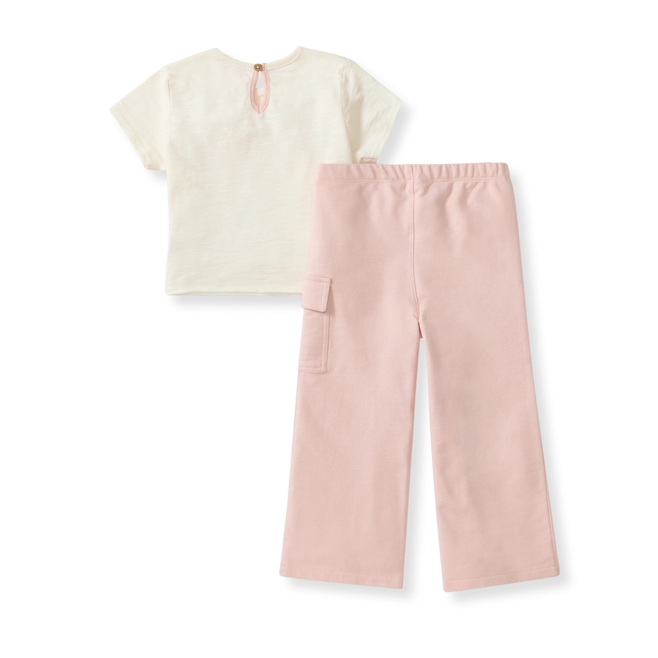 Easy tee, comfy wide legged pants, and pockets on both to store all your springtime treasures—playtime never looked this fun!