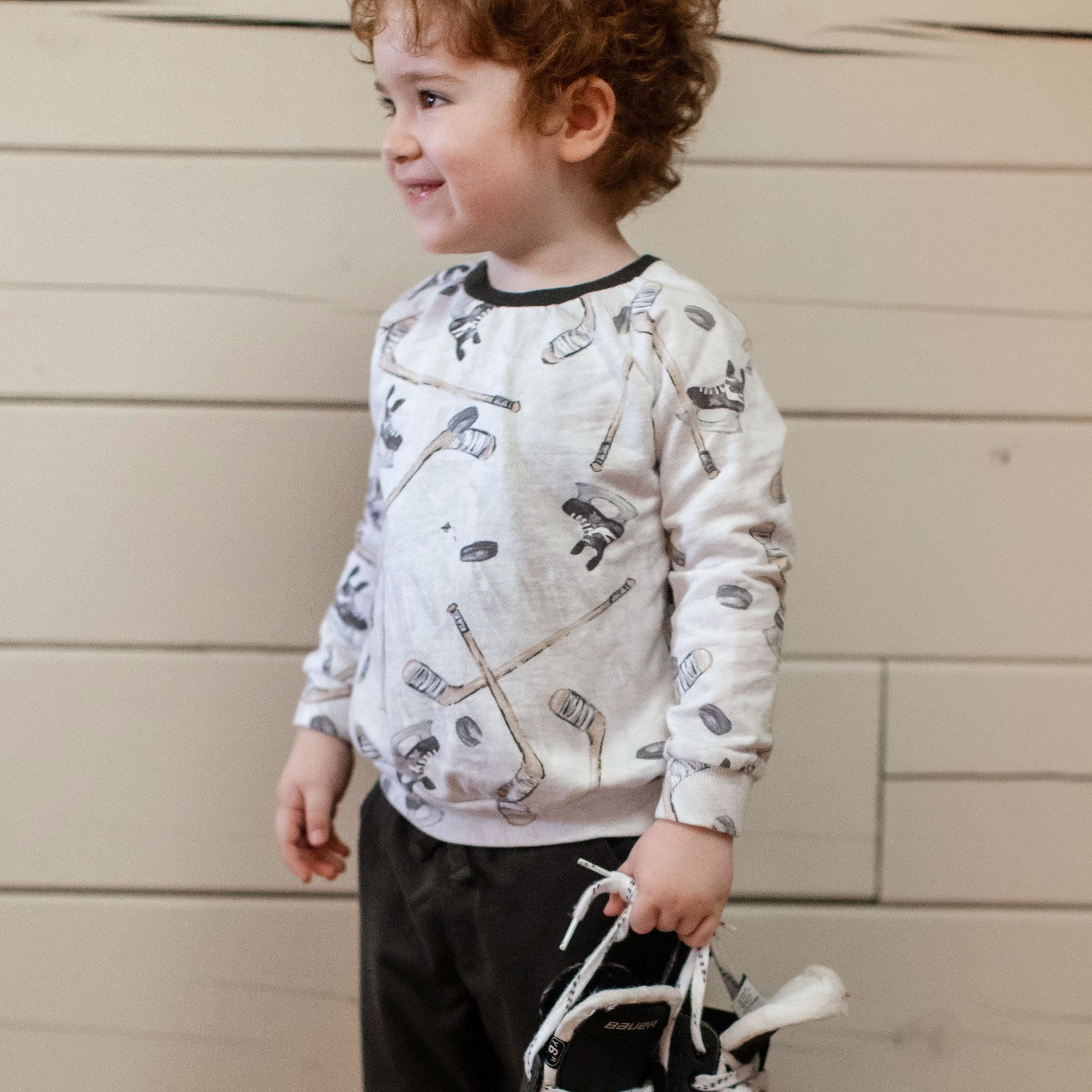 Your little bee will be casual and cool in our handpainted hockey sweatshirt and jogger set!