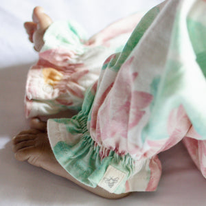 Long legs and delicate smocking with pretty straps make this lotus-print jumpsuit a cozy, charming choice for everyday adventures and special moments.