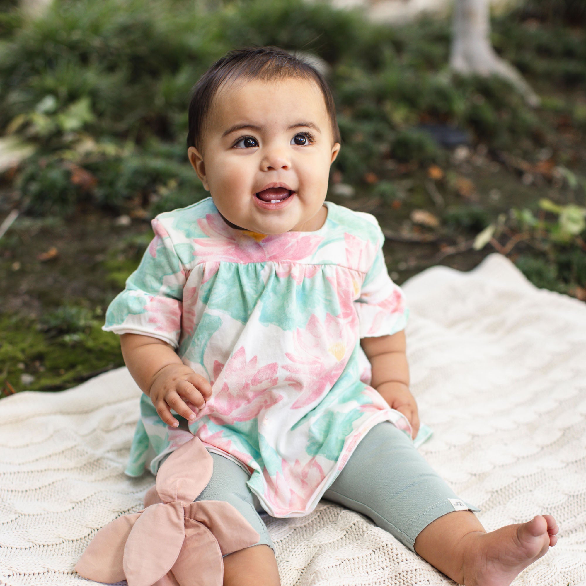 Enjoy easy, all-day wear with this soft tunic adorned with a beautiful lotus print and pretty ruffled sleeves, paired with comfy capri leggings.