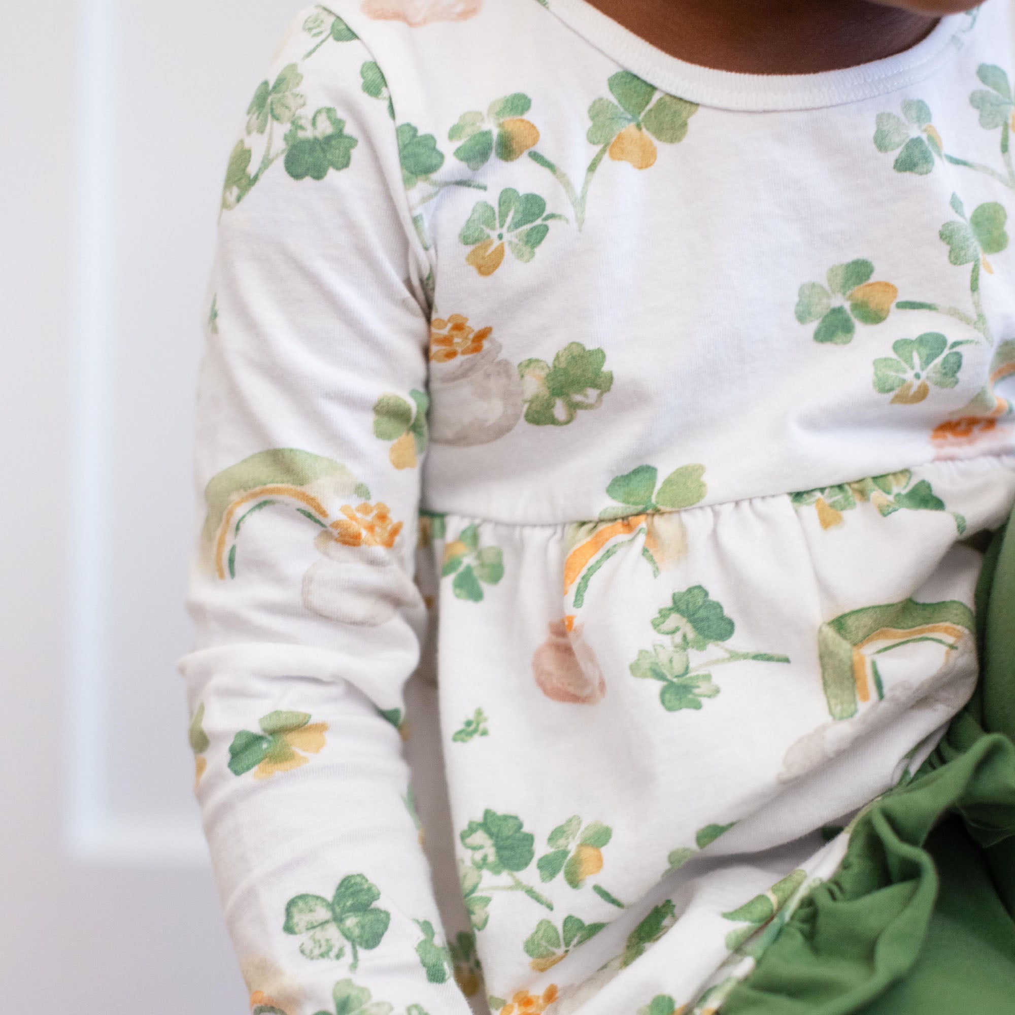Your little one will chase rainbows in style with this soft and comfy St. Patrick’s Day set!
