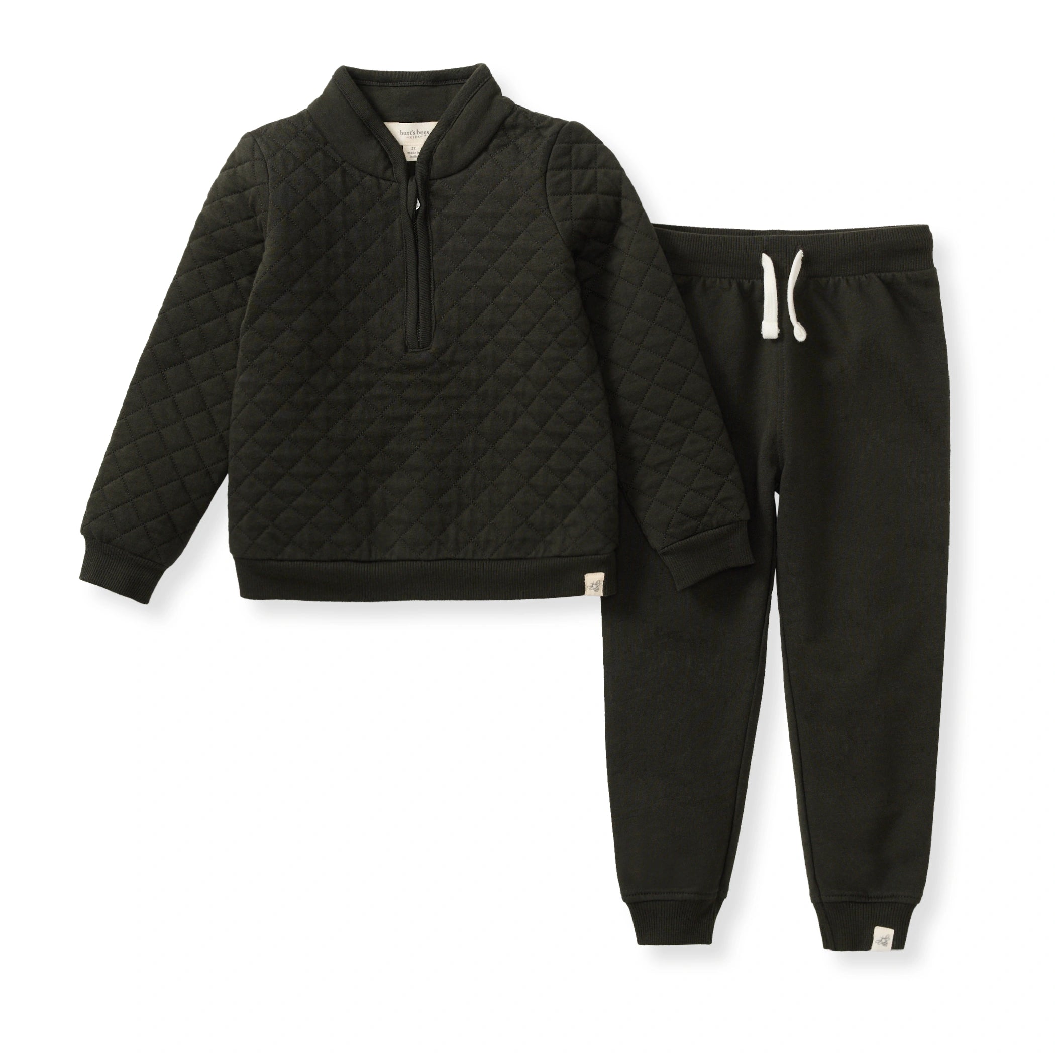 Keep your little guy cozy and cute in our quilted sweatshirt and pant set!