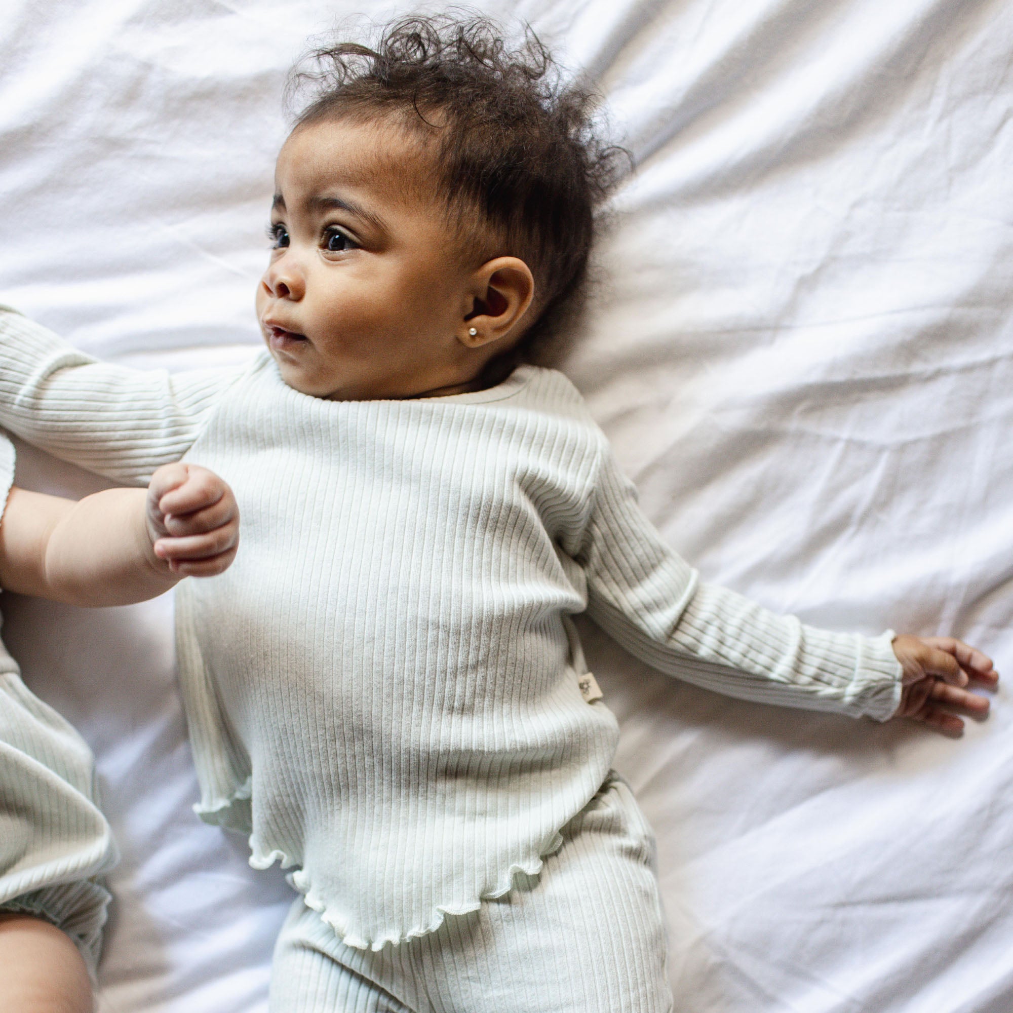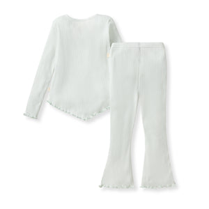 Elevate everyday comfort with this flared legging and long-sleeve tee set crafted in soft, stretchy rib cotton.