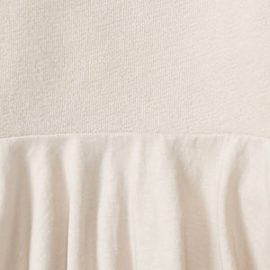 Comfy, cozy, and cute in this textured sweatshirt set with a ruffled asymmetrical hem.